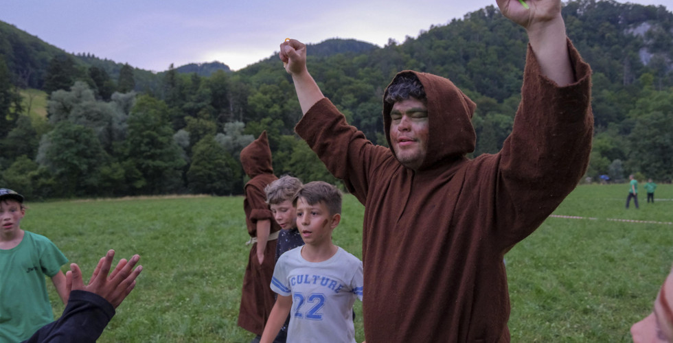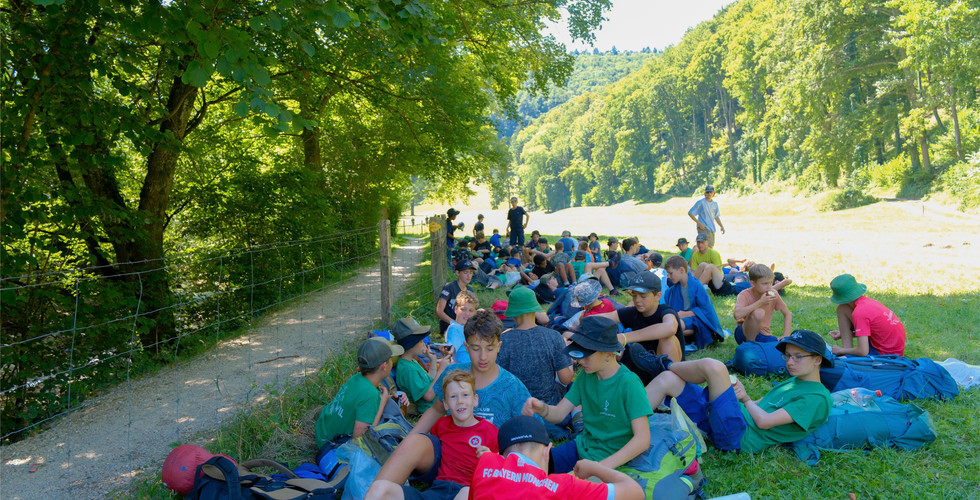 Währenddessen zogen die Älteren zu Fuss los, durch Wälder und Wiesen, mit einem actionreichen Zwischenhalt in der Badi. Am Abend verteilten sie sich in ihren Gruppen auf diverse Schlafplätze.